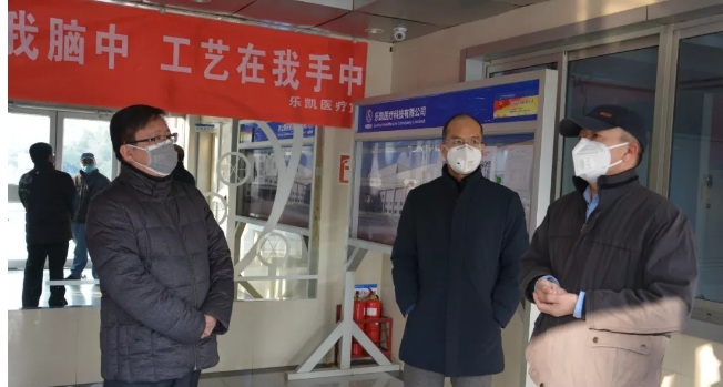 圖為滕方遷到樂凱醫(yī)療實地檢查復(fù)工工作